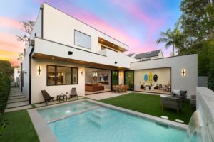 Modern,Luxury,Home,With,Pool,And,Outdoor,Seating,At,Sunset,